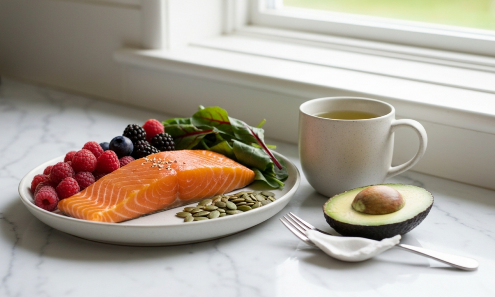 다행히도 우리가 먹는 음식으로 코르티솔 수치를 자연스럽게 조절할 수 있어요. 먼저 오메가-3 지방산이 풍부한 음식들이 큰 도움이 됩니다. 연어, 고등어, 참치 같은 생선류와 호두, 아몬드, 치아시드 등이 대표적이죠.