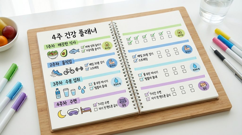 실패를 반복하는 사람을 위한 4주 재시작 플랜(식단·운동·수면·기록)